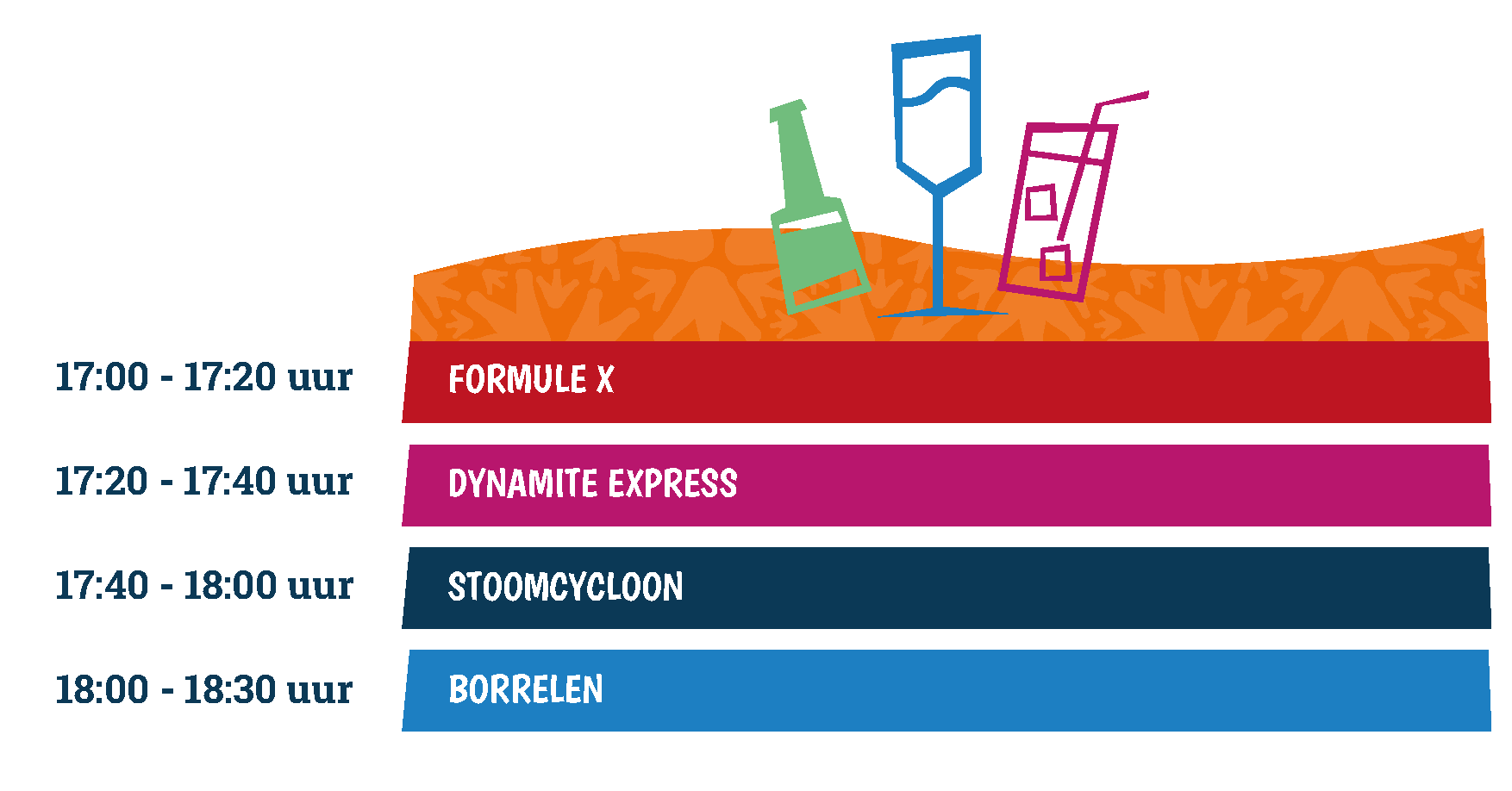 *Op sommige dagen is het park tot 18:00 uur geopend. Op die dagen schuift het programma met 1 uur op.